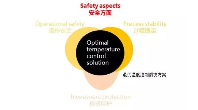 如何來評(píng)估一個(gè)溫度控制解決方案?要建立一個(gè)合理的評(píng)分系統(tǒng),安/全須是需要考慮的主要因素。任一決定都須在多方面確保安/全。毫無疑問,操作人員的安/全須放在一位。但是,除了操作人員的安/全外,Z終的方案須反映出另外三個(gè)方面的安/全考慮:一,為了確保方案能夠WM執(zhí)行,整個(gè)過程的穩(wěn)定性至關(guān)重要。二,投資保護(hù),主要有兩方面:1)找到體系長期保值的方法;2)對(duì)昂貴的反應(yīng)釜設(shè)備進(jìn)行維護(hù)。三,整個(gè)系統(tǒng)的安/全操作??偟膩碚f,對(duì)于一個(gè)既定應(yīng)用來說,好的高動(dòng)態(tài)溫度控制解決方案包含了三個(gè)關(guān)鍵因素:過程穩(wěn)定,投資保護(hù)和操作Safety。下圖展示了這三者的關(guān)系。