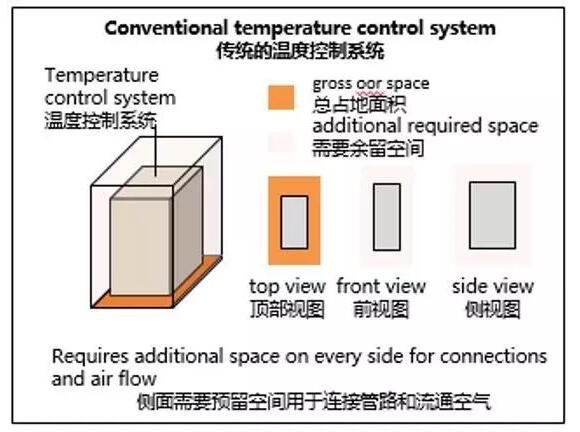 當(dāng)然,從經(jīng)濟(jì)的角度上并不能詮釋設(shè)備的方方面面。一個(gè)在實(shí)驗(yàn)室工作的人都知道空間寶貴,設(shè)備占用的空間越小,操作員能夠使用的空間就越多。在許多案例中,僅僅獲得很小的一部分空間,也能使得整個(gè)實(shí)驗(yàn)室大為改觀。在估算設(shè)備占用空間時(shí),需要考慮的不僅僅是設(shè)備本身的外形尺寸,設(shè)備所需要的散熱空間也重要。一款節(jié)省空間的溫控設(shè)備把接口和進(jìn)出水口設(shè)計(jì)在前后兩端。這樣的設(shè)計(jì)能夠允許用戶在設(shè)備旁邊直接放置其他儀器。其他設(shè)計(jì)考慮不足的溫控設(shè)備則需要用戶須預(yù)留足夠多的空間來進(jìn)行散熱或者連接其他設(shè)備。